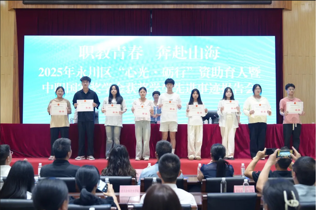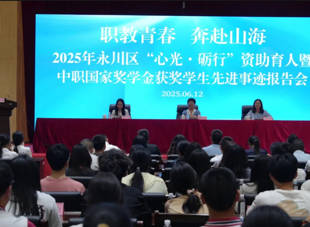 近日,永川区“心光?砺行”资助育人暨2023-2024学年度中职国家奖学金获奖学生先进事迹报告会在重庆市经贸中等专业学校学术报告厅举行。
