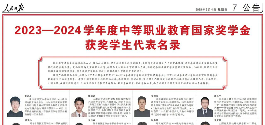 曾成冬同学在世界职业院校技能大赛供用电技术项目中荣获金奖,被《人民日报》报道;冉智鹏同学深耕工程测量项目,在服务乡村振兴的实践中提升了职业素养。获奖学生以“技能成才、匠心筑梦”为主题,生动诠释了新时代职教学子精益求精的职业精神和昂扬向上的奋斗姿态。